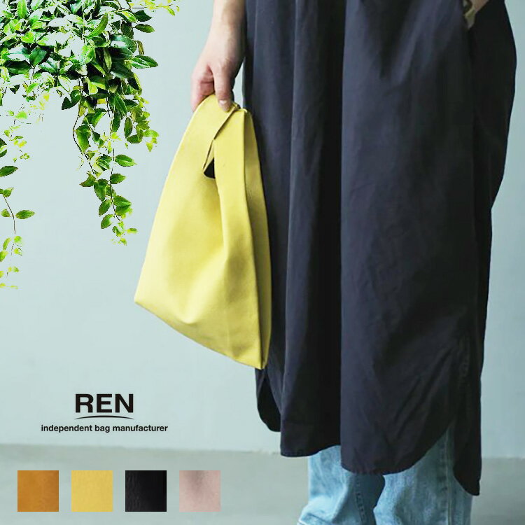 【REN -MADE IN TOKYO-】 さまざまな物があふれている時代に新しいスタンダードを創造していくという意思を込め、透明感のある澄んだ響きがブランド名に込められています。 80年代以降のインダストリアルデザインの影響を受け、無駄な部分を省き作られたバッグのブランドです。 持った時のバッグの馴染み方を意識し、素材感を重視した主張しない物作りに拘っています。 バッグ作りをひとつのファッションとして捉え、洋服を作るような感覚でデザインし、人それぞれのスタイルに調和するバッグを目指しています。 中性的な雰囲気で展開するライン『FUKURO フクロ』は、古くからあるシンプルな袋や、使い捨ての袋などに注目し、素材の柔らかな風合いがそのままいきるような、形やサイズを重視し作られています。 "レジブクロ"は、日常生活の中でよく目にしているレジ袋を元に作られたRENの定番のバッグです。 本体サイズは、縦向きにB5ノートが収まります。 柔らかな革の特徴を生かし折り畳んで小さく持ち歩くことができ、ちょっとしたサブバッグとしても活躍してくれます。 荷物の量が多い時のたっぷりと膨らんだ見た目がかわいらしいのも魅力です。 レザーはRENオリジナルピッグスキン"HALLIE"を使用。 軽さを追求するために、あえて裏地も付けず、金具をできる限り省いたシンプルな作りとなっています。 革が薄いので見た目はきゃしゃですが、バッグとして使用する際の問題ない引張り強度があり、6〜7kgほどの重さに耐えることができます。 ※こちらの商品は天然の皮革を使用しております為、色落ちする場合がございます。衣類に触れる場合、水にぬれる場合は特にご注意ください。また、REN商品の特性上、革の表面にキズや色ムラ、シワがある場合がございますが、商品不良等ではございませんのでご了承ください。 ※革タグのデザインが変更になる場合、付属しない場合がございます。ご了承ください。 サイズ:幅21×高さ25.5×マチ5.5cm 重量 :約150グラム 素材 :ピッグスキン(豚革)