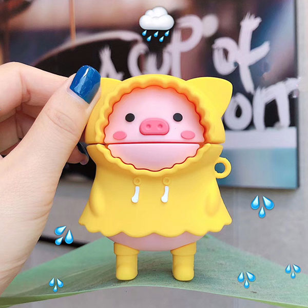 AirPods Pro Raincoat Pig Case レインコート ピッグ ピンク 豚 ポンチョ 雨 雨具 傘 レイン ブーツ ドール キャラクター 面白い ユニーク エアポッズ ストラップ リング 立体的 可愛い ユニーク アイフォン デザインケース エアーポッズケース エアーポッズカバー