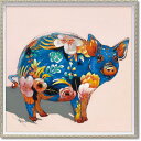 絵画 オイル ペイント アート「ペイント ピッグ(Mサイズ)」 油絵 額入 カラフル ブタ 手描き 動物画 花柄 インテリア 壁掛 アート プレゼント モダン リビング 玄関 に 飾る オフィス 店舗 ギフト お祝い 額装込 フレーム付 ハンドペイント 3Lサイズ おしゃれ 壁掛け 絵