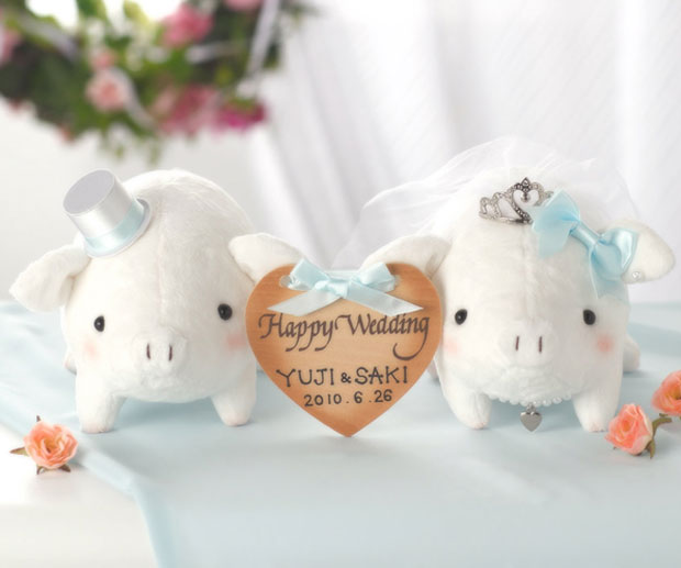 結婚式にピッタリ!!幸せを運ぶと言われる縁起の良い人気の‘ぶたさん’がウェルカムドール(ウエルカムピッグ)になりました。ボア生地があらかじめカットしてあるから、間違って裁断する失敗が少なく安心。しかも、綿200g・ぬいぐるみ針・すべりが良く縫いやすい糸・新婦用ティアラが付いた、お裁縫初心者に嬉しいセットです♪ 新郎ぶーちゃんのシルクハットと、新婦のぶーちゃんのサテンリボンは、ウェディングの定番、幸せのサムシングブルーです!耳にはパールのピアス、首にはパールのネックレスとハートのチャームが付いていて細かいところまで、とってもラブリー♪ ハート型のプレートには、お二人のお名前と結婚記念日を書き込めるので、ウェルカムボードとして大切なゲストをお出迎えできますヨ。披露宴では、新郎新婦のお留守番をさせたり、ぶたさんのぬいぐるみとしてお子様にプレゼントしたり、花束贈呈代わりにお父様お母様に贈呈しても良いですね。※木製ハートボードの名前や日付はご自身で入れてください。 ※Happy Weddingの文字は入っております。 ラブリーな>>とんちゃんシリーズは手作りキットも完成品もあります。どれかは手作りでどれかは完成品を、と揃えてラブラブゥ感を演出しよう♪結婚祝いにもGood. 内容 ウェルカムドール手作りキット一式※1つのキットで2体(新郎新婦)お作りいただけます。 ●テディベア用わたわた100g×2個(使用200g) ●ハマナカぬいぐるみ用針6本セット×1個 ●キルト糸ウエディングドール用×1個 ●ウエディングドール用ティアラ×1個 ☆新郎のシルクハットと新婦のベールもキットに付いています。 サイズ 1体のサイズ:約縦14×横15(耳含む)×奥行き約20(cm)※手作り具合により多少異なります。 ホビータイム 約3.5時間〜12時間※人により異なります。 備考 【用意するもの】 >>まち針(普通地用)・>>手芸用ボンド・>>目打ち(目や鼻の穴を開ける)・>>手芸用はさみ・両面テープ・>>チャコペン・綿詰め用の長い棒・定規・黒ペン(鼻用)・赤えんぴつまたは頬紅(頬・耳用)・アイロン・エプロン(作業用)など ご注意 ●副資材無しのキットが良い方は>>こちらから ●メモリアルプレートは、ご本人様が手書きしてください。 ●全て手縫いです。ミシンは使用しません。●お写真とは若干色合いが異なることがございます。●お写真のお花・小物は付いておりません。 ●テキスト通りに作っても、顔の表情や形が違ってくることがあります。それも手作りの「味」だと思っていただければ幸いです。●こちらは手作りキットです。完成品が良い方は>>ウェルカムとんちゃん(ホワイト)完成品から。 ★色違いあります>>ウェルカムとんちゃん(ピンク)副資材付きを見る★小さなベビー!?お揃いで作っちゃおう!>>ミニミニとんちゃん(ホワイト)はこちら★保管やホコリよけにクリアボックスはいかがですか?幸運を招く★キュートなぶたさんを作ろう!初心者でも安心のボア生地カット済み&ティアラ・副資材付き※写真のキットは色違いの>>ウェルカムとんちゃん(ピンク)です。 一緒にゆっくり、長く歩いていこうね★私のリボンは幸せになれるサムシングブルーなの(^^)v私たちはしっぽがカワイイのよ♪ F.T様がお写真を送ってくださいました!お嬢様のご結婚式のプレゼントとのこと。 アレンジされたベールが豪華です★ F.T様は>>ローズのリングピローも手作りされました。 お嬢様、世界一の幸せものです(^o^)