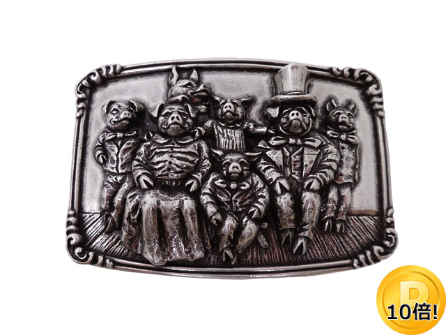 ■IDAM■ フランス製 『豚家族』 バックル 40mm幅対応 【シルバー】 メンズ レディース ピッグ ファミリー ゴシック ユニーク デザイン ハード ロック ビジュアル バイカー ジーンズ ベルト 衣装 ライブ 上野 アメ横