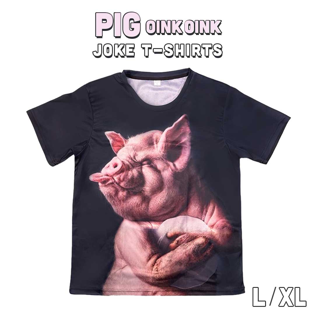 【在庫限り】Tシャツ 豚 ピッグ 半袖 シャツ ティーシャツ メッシュ素材 Ice 選べる2サイズ トップス プリント ユニーク 韓国ファッション メンズ レディース 男女兼用 ユニセックス おもしろ ビッグシルエット ルーズ メンズライク おうち時間