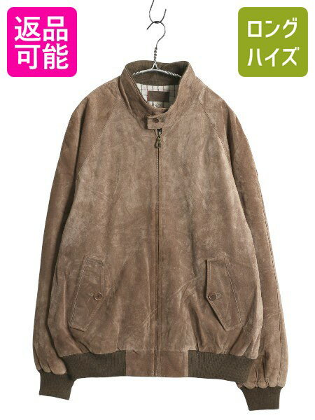 ペンドルトン 本革 スウェード レザー ジャケット メンズ L 革ジャン G9 タイプ ブルゾン ジャンパー スイングトップ チェック ライナー 茶| 古着 中古 PENDLETON オールレザー レザージャケット ピッグ スエード ハイネック ブラウン シンプル ゆったり 無地 フルジップ