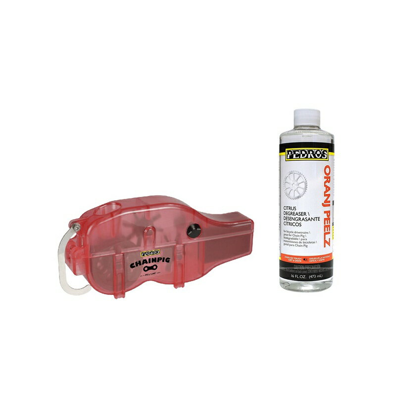 プロメカニックのためにデザインされたブタの形のチェーンクリーナーと洗浄剤のセット セット内容:ペドロス チェーン ピッグ(110605)、ペドロス オレンジピールズ 475ml(110507) 多段変速からシングルスピードまで幅広く対応。 クイックロックシステムにより取り付けが簡単。 洗浄剤の使用量が少なく経済的。 1回の洗浄につきわずか30mlの使用量。 大きく丈夫なスポンジにより洗浄液の飛び散りを防止。 本体は非常に丈夫な強化プラスチック素材で長期間使用可能。 回転ホイールに付いたブラシは今までのチェーンクリーナーと比べて抜群の耐久性。 独自のディレーラーフックによって手を離して作業が可能。 商品のカラー・サイズについて商品のカラーはディスプレイの種類等により、実物と異なって見える場合がございます。掲載商品の仕様、ロゴ等のデザインは改良のため、変更される場合がございます。また、メーカーが発表していない寸法や個人的なフィット感についてはお答えいたしかねます。あらかじめご了承くださいますようお願いいたします。沖縄県への送料について 沖縄県への発送に送料無料は適用されません。購入金額に関わらず1,650円(税込)が通常送料に別途加算されます。