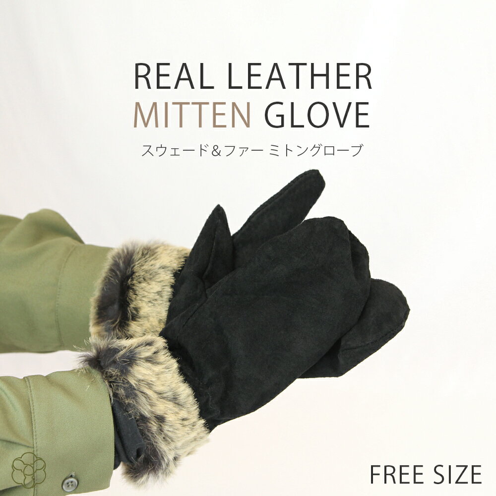 リアルレザー リアルファー ピッグスウェード ラビットファー 本革 ミトン手袋 選べる2色 黒 茶 レディース手袋 防寒 防風 暖かい おしゃれ自転車 通勤 通学 あったかグッズ【2点まで追跡可能メール便300円対応】