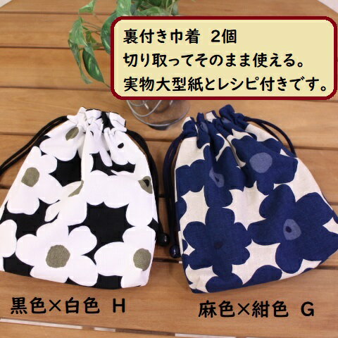 【かんたんキット】フラワー裏付き巾着(小)2個作れます nk61-01-4綿麻生地 大きい花柄 花柄 シンプル 北欧風 北欧調 フラワー生地 かんたん キット セット 簡単 カンタン 手作りキット カバン 巾着 袋 手縫いで作れる 布 実物大型紙 実物大型紙付き レシピ ファブリック