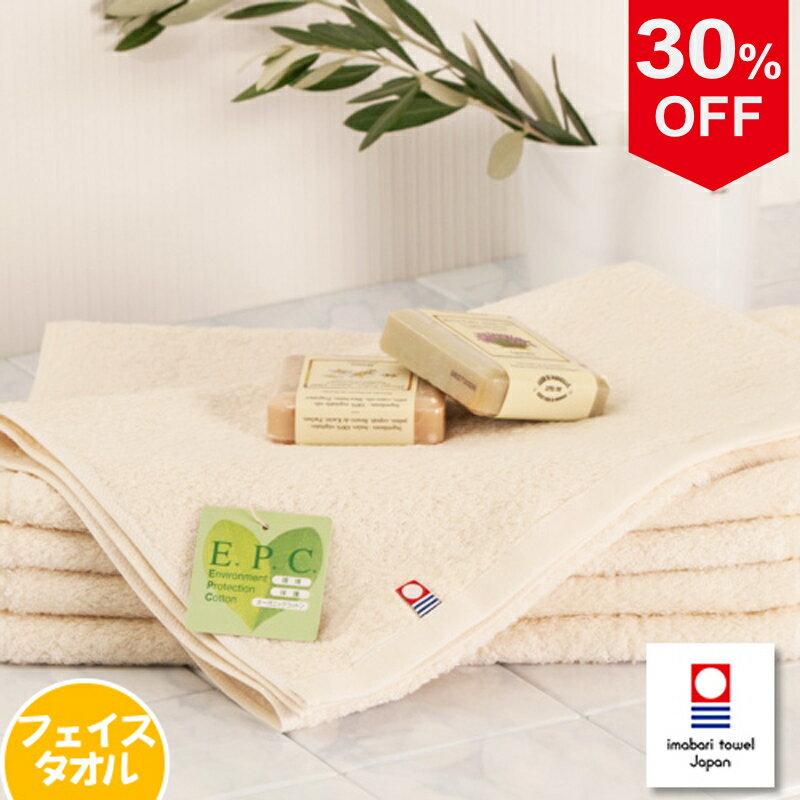 【30%OFF】SALE 今治タオル フェイスタオル ピュアオーガニック ベビーにも安心 オーガニック コットン100% E.P.C. 今治 ロゴつき 今治フェイスタオル TRUE ORGANIC セール