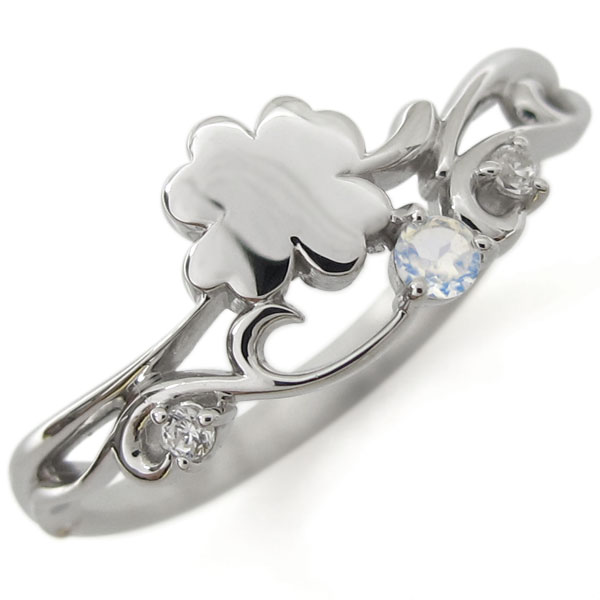 クローバーピンキーリング ロイヤルブルームーンストーン シルバー アクセ ピンキーリング 四葉 指輪
