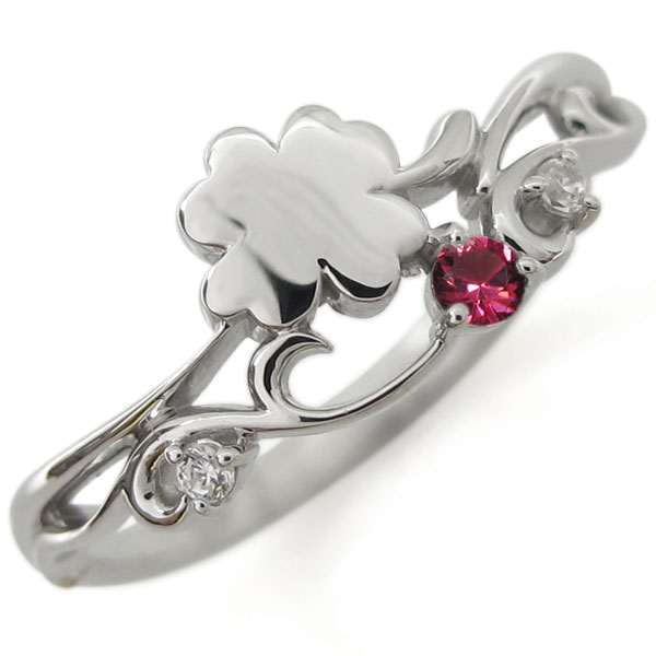 クローバーピンキーリング ルビー シルバー アクセ ピンキーリング 四葉 指輪