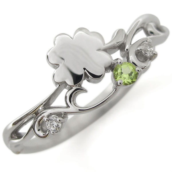 クローバーピンキーリング ペリドット シルバー アクセ ピンキーリング 四葉 指輪