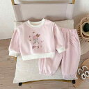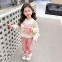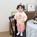 キッズ 女の子 ベビー セットアップ 2点セット 春秋 韓国風 長袖 ロングパンツ キャラクター コットン ピンク かわいい 普段使い