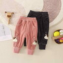 パンツ ベビー 男女兼用 長丈 裏起毛 厚手 コーデュロイ 綿 サルエルパンツ 韓国風 秋冬 ボトムス 柔らか素材 防寒 保温 部屋着 普段使い キャラクター柄 ピンク グレー