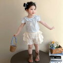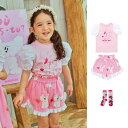 セットアップ 女の子 キッズ 2点セット 上下セット パフスリーブ 半袖 キャラクター Tシャツ フリル ショートパンツ 綿 コットン 薄手 柔らかい 快適 普段着 通園 外出 ピンク 春夏