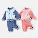 ベビー セットアップ 赤ちゃん ツーピース パンツ 上下セット 春秋 運動着 スポーツウェア カジュアル 綿 コットン キャラクター柄 おしゃれ かわいい 長袖 ピンク ブルー 0歳 1歳