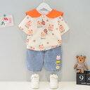 ベビー 女の子 春秋 セットアップ かわいい 韓国風 キャラクター柄 長袖 プルオーバー ロングパンツ 2点セット 綿混 コットンブレンド 柔らかい 肌触り お出かけ 普段使い ピンク ブルー