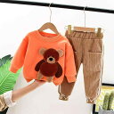 セットアップ ベビー 女の子 冬 裏起毛 厚手 立体クマ キャラクター スウェット トレーナー ロングパンツ 2点セット 綿 コットン あったか おしゃれ かわいい 普段着 ルームウェア オレンジ ピンク イエロー