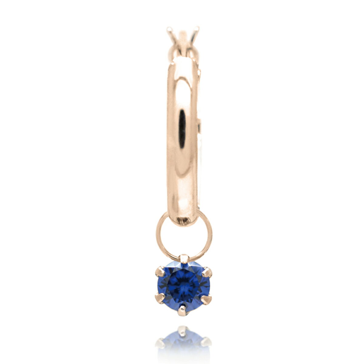 キュービックジルコニア ブルー サファイアカラー 青 チャーム スナップ ピアス K10 ピンクゴールド PG 3mm フープ 10mm 片耳用 fourm レディース メンズ 男性 女性 ラッピング 包装 袋 誕生日 プレゼント ケース 箱 華奢 可愛い おしゃれ 手紙 記念日