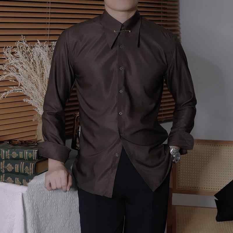 シャツ メンズ 長袖 ビジネス 紳士 大きいサイズ ピンホールカラー カジュアル オフィス スリム ブリティッシュ ノーアイロン 茶色 黒 白 無地 スタイリッシュ おしゃれ