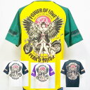 ピークドイエロー PEAK'D YELLOW半袖Tシャツ PYT-213 観音姉御 アメカジ バイカー ロック ベース お姉ちゃん 和柄/大きいサイズXXL 3L