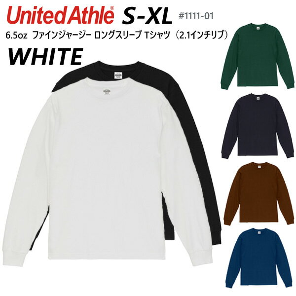 【ホワイト S-XL】6.5オンス ファインジャージー ロングスリーブ Tシャツ(2.1インチリブ) United Athle ユナイテッドアスレ コンパクトコーマ糸 なめらか 無地 長袖 ロンT メンズ レディース ユニセックス 男女兼用 シンプル おしゃれ 上質 1111-01