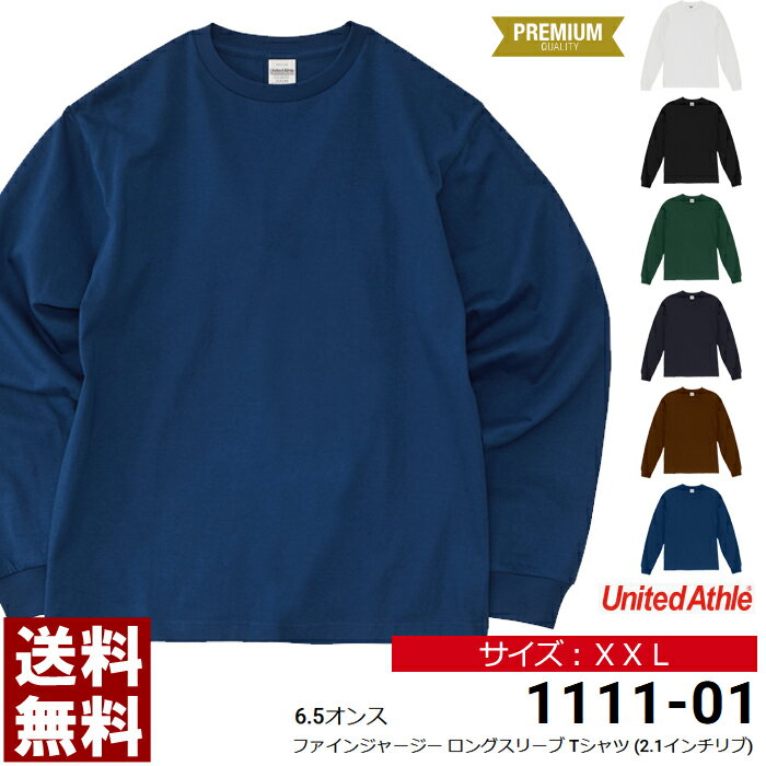 【XXL】6.5オンス ファインジャージー ロングスリーブ Tシャツ(2.1インチリブ) United Athle ユナイテッドアスレ コンパクトコーマ糸 なめらか 無地 長袖 ロンT メンズ レディース ユニセックス 男女兼用 シンプル おしゃれ 上質 1111-01