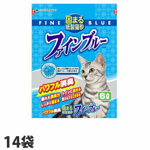 猫砂 紙製 常陸化工 固まる紙製猫砂 ファインブルー 6L×14袋(2ケース)『送料無料(一部地域除く)』