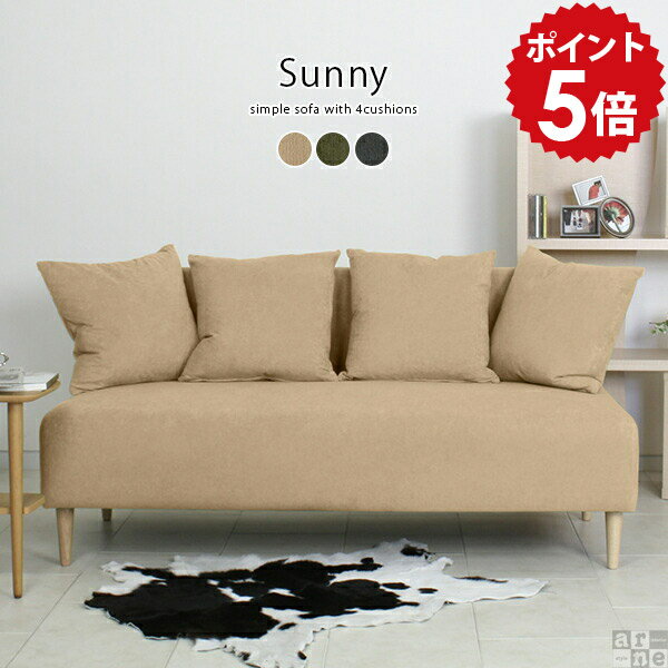 コンパクトソファ アームレスソファ クッション付き モダン生地■サイズ約幅1400 奥行き680 高さ680 mm座面高さ:380 mm座面奥行き:630 mm脚の高さ:150 mm梱包サイズ:約幅1420 奥行き840 高さ720 mm■材質[本体]Sバネ、2層ウレタン、合板 [脚]天然杢[張地]ポリエステル100%■カラーベージュ/カーキ/グレーからお選び下さい。※モニターなどの閲覧環境によって、実際の色と異なって見える場合がございます。■重量約30kg■仕様日本製完成品(脚のみお客様取り付け)ローソファとしても使えるアジャスター付属※カバーの取り外しはできませんソファと同色クッション4個付属(45×45cm)■ブランド ■送料送料無料※離島は送料別途お見積もり。■納期ご注文状況により納期に変動がございます。最新の納期情報はカラー選択時にご確認ください。※商品到着までの日数は、地域により異なりますご購入時にお届け日の指定がない場合、最短日での出荷手配を行いメールにてご連絡させていただきます。■配送について【ご注意ください】離島・郡部など一部配送不可地域がございます。配送不可地域の場合は、通常の配送便での玄関渡しとなります。運送業者の便の都合上、地域によってはご希望の日時指定がお受けできない場合がございます。建物の形態(エレベーターの無い3階以上など)によっては別途追加料金を頂戴する場合がございます。吊り上げ作業などが必要な場合につきましても追加料金はお客様ご負担です。サイズの確認不十分などの理由による返品・返金はお受けできません。※ご注文前に商品のサイズと、搬入経路の幅・高さ・戸口サイズなど充分にご確認願います。■備考※オーダー商品につき、ご注文のキャンセル・変更につきましてはお届け前でありましても生産手配が済んでいるためキャンセル料(商品代金の50%)を頂戴いたします。※製造上の都合や商品の改良のため、予告なく仕様変更する場合がございますので予めご了承ください。 Sunnyシリーズをもっと見るソファをもっと見る当店オリジナル家具を全部見る■管理番号0000a25069/0000a25070/0000a25071/メーカー希望小売価格はメーカーカタログに基づいて掲載していますこのページは Sunny 2P モダン生地のページです。▲ Sunny 2P手軽さと使い心地を兼ね備えた、クッションつきのファブリックソファ。開放感のあるアームレスタイプで、リーズナブルながら品質にもこだわった、安心の日本製。ふかふかのクッションが4個も付属!どんなテイストのお部屋にも合わせやすい、シンプルなデザイン。もちろん、クッションをはずしても使用できます。奥行き深めでゆったり座れるロングチェアーとしても、寝転んでデイベッドとしても。くつろぎ方は、あなた次第。狭いお部屋でも圧迫感のないアームレスタイプで、余計なスペースが要りません。背もたれ部分はほぼ垂直になっているので、壁面にぴったり設置できます。座面はやや固めの座り心地。