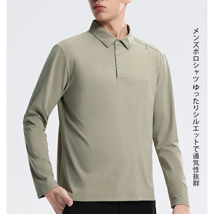 メンズフィットネストップス 速乾長袖ポロシャツ アウトドアVネックテニスウェア シンプルポロカラーゆったりカジュアルトップス 春・秋向け