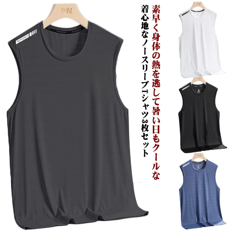 ドライ涼しい3枚セット!吸汗速乾筋トレ接触冷感タンクトップTシャツ薄手メンズ無地夏メッシュスポーツウェア袖なしTシャツ運動着ジムフィットネストップス大きいサイズ夏服ランニングトレーニングウェア送料無料運動会体育祭ノースリーブ