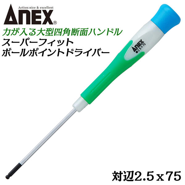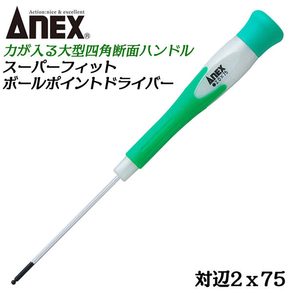 ANEX スーパーフィットボールポイント精密ドライバーNo.3531 対辺2.0×75<ネコポス利用のため日時指定・代引不可>【沖縄・離島でも頑張って送料無料!】