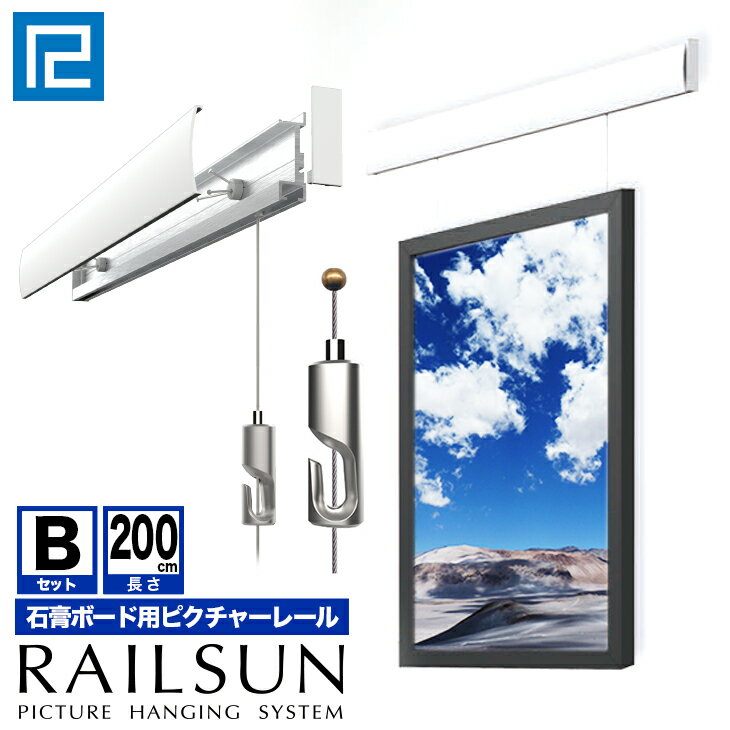 RAILSUN レールサンピクチャーレール セット 2m(200cm) 【石膏ボード用レールBセット】WRS-200B FITボール式ワイヤー自在付額吊レール 【大型送料別商品】【代引き不可】 福井金属