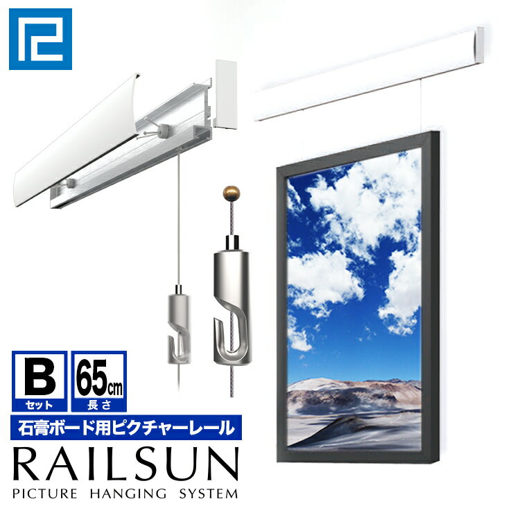 RAILSUN レールサンピクチャーレール セット 65cm【石膏ボード用レールBセット】WRS-65B FITボール式ワイヤー自在付額吊レール インテリア雑貨 ディスプレイ 福井金属