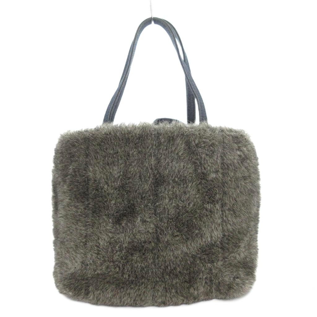 【中古】アニエスベー ボヤージュ Agnes b. VOYAGE フェイクファーハンドバッグ トート デニム地 グレー /GV レディース 【ベクトル 古着】 251011
