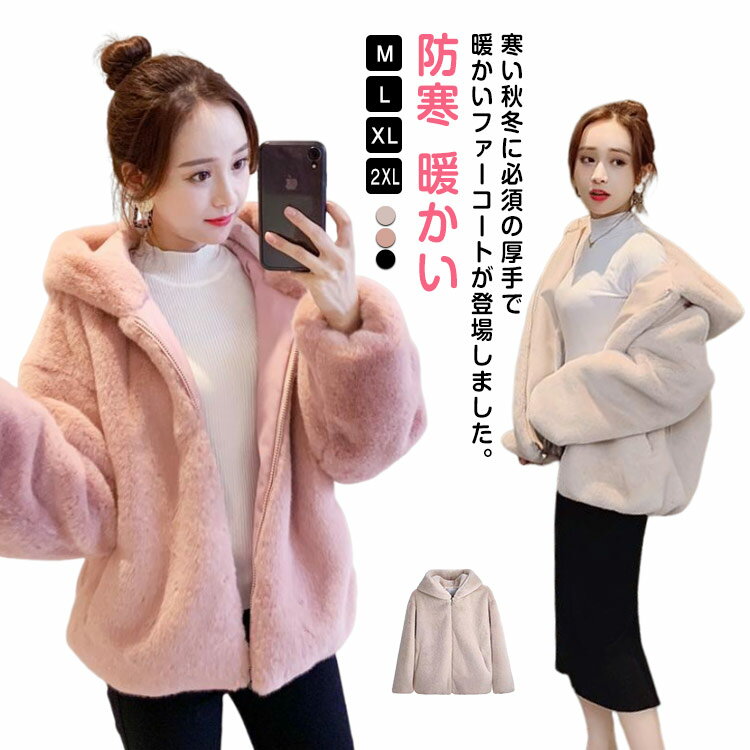 ボアコート レディース ファーコート ムートンコート 毛皮コート ミディアム丈 オーバーサイズ ドロップスリーブ アウター ジャケット フェイクムートン フェイクファー 大きいサイズ 防寒 カジュアル 暖かい もこもこ 体型カバー ゆったり フード付き