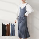 プリーツ ワンピース ふんわり 無地 シフォン ロング丈 ミドル丈 体型カバー スカート カジュアル オフィス フェミニン キャミワンピース 夏 夏服 韓国ファッション