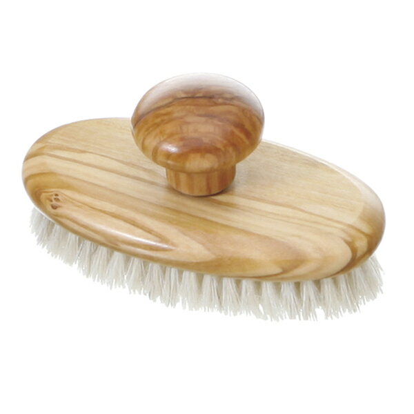 100年以上の歴史を持つドイツのフェラー社。ドイツで製造し、高品質な商品開発を常に心掛け、進化しつづけるデザイン性も評価されています。木の原産地は地中海地域(ギリシャ、スペイン、イタリア等)で非常に古い木のみを使っています。その成長が非常にゆっくりなため、木の性質として非常に固く密度が高いのが特徴です。また毛素材は厳選された馬毛を使用しており、肌へのやさしいタッチが特徴のボディブラシです。◆特徴:ボディブラシ、オリーブの木、馬毛◆サイズ:約13×6.5×7cm◆素材:オリーブの木、馬毛◆原産国:ドイツ ●お肌を痛めないようにこすり過ぎにご注意下さい。●肌の弱い方、アレルギー体質の方、皮膚に異常のある方はご使用にならないで下さい。●乳幼児にはご使用にならないで下さい。●天然木を使用しているため、水分を含むと反りや変形が起こる場合があります。 ご使用後はよくすすいで水気を切り、風通しの良いところで乾かして下さい。●毛抜けの原因となりますので、毛の部分を強くひっぱらないで下さい。●強い力で円を描くように使用すると、毛が倒れ絡み合う場合があります。毛先が回る程度の軽い力でご使用下さい。●毛が倒れこんでしまった場合には、熱いお湯につけ、毛が柔らかくなったところで堅い櫛状の物ですいて下さい。●天然毛は初めのうち獣毛特有の臭気を発する場合がありますが、 繰り返しご使用頂くと次第に消えていきます。