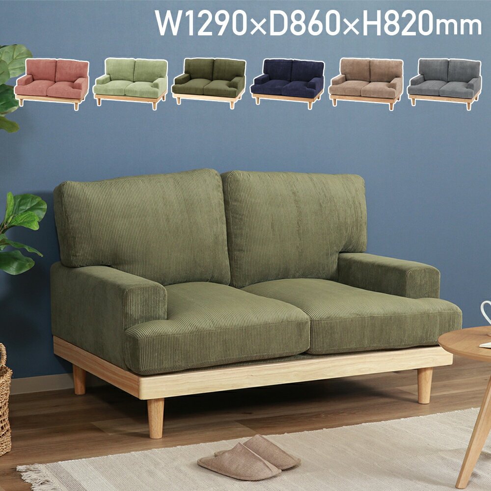 コーデュロイソファ フェリーチェ 2P W1290 D860 H820 フェリーチェシリーズ ソファ 椅子 イス 木製家具 天然木 ポケットコイル コーデュロイ生地 2人掛け 肘付き 脚部取り外し 幅129cm 奥行86cm 高さ82cm グリーン/カーキ/ブラウン/グレー