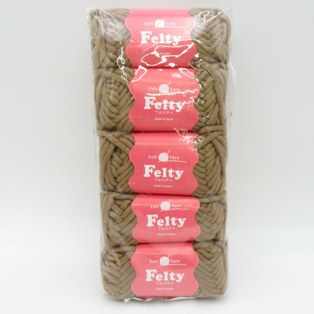ハマナカ 毛糸 Felty フェルティ 5玉セット 5番色 ブラウン ウール100% 1玉50g 約27m フェルト糸 超極太 日本製 編み物 秋冬 未使用品【中古】