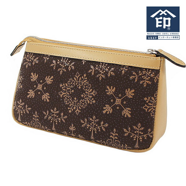 印伝 【甲州印伝 印傳屋 上原勇七】化粧ポーチ 小物入れ【フォルキィ 9130】 女性用 レディース 鹿革 本革 レザー 花柄 ブランド 冬ギフト バレンタイン 贈り物【YM02】