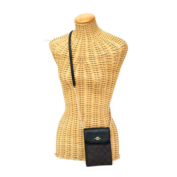 コーチ COACH レイチェル フォン クロスボディ PVC / スムースレザー シグネチャー 3051 スマホショルダー 斜め掛け 肩掛け ミニ ショルダーバッグ ポシェット ミニバッグ レディース メンズ ダークブラウン / ブラック 中古 mbe11005