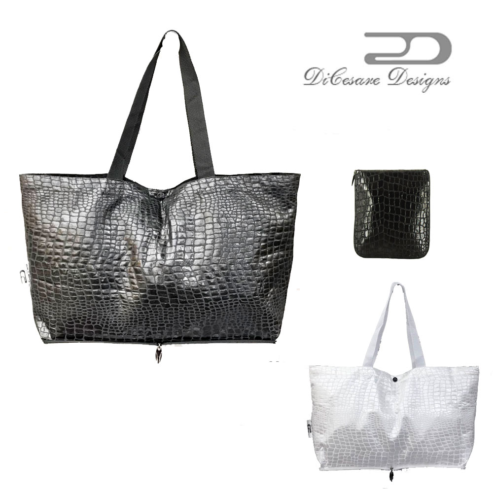 DiCesare Designs Wide Folding Tote Bag Crocodile Jacquard トートバッグ サブバッグ エコバッグ 折り畳みバッグ ジャカード織 撥水加工 高級 上品 プレゼント ギフト 贈り物 メタリック オシャレ シンプル 軽い 鞄 かばん カバン