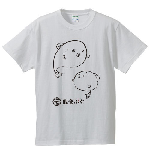 北陸ご当地グッズ 石川県能登 企業コラボ 「能登ふぐ」柄 Tシャツ メンズ レディース ユニセックス 男女兼用 おもしろTシャツ 半袖 ホワイト S/M/L/XL