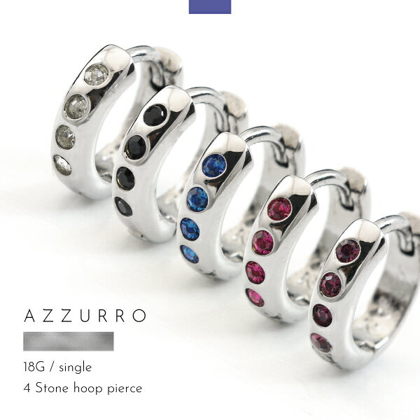 ピアス フープ ワンタッチ キャッチレス リング 中折れ シルバー ジルコニア アズーロ AZZURRO メンズ レディース 片耳用 ブランド シンプル
