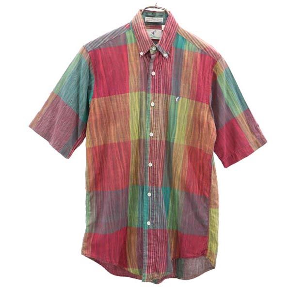 フライングスコッツマン 90s オールド チェック柄 半袖 ボタンダウンシャツ S 赤×黄×緑 Flying Scotsman USA製 メンズ 【中古】 【230617】 メール便可