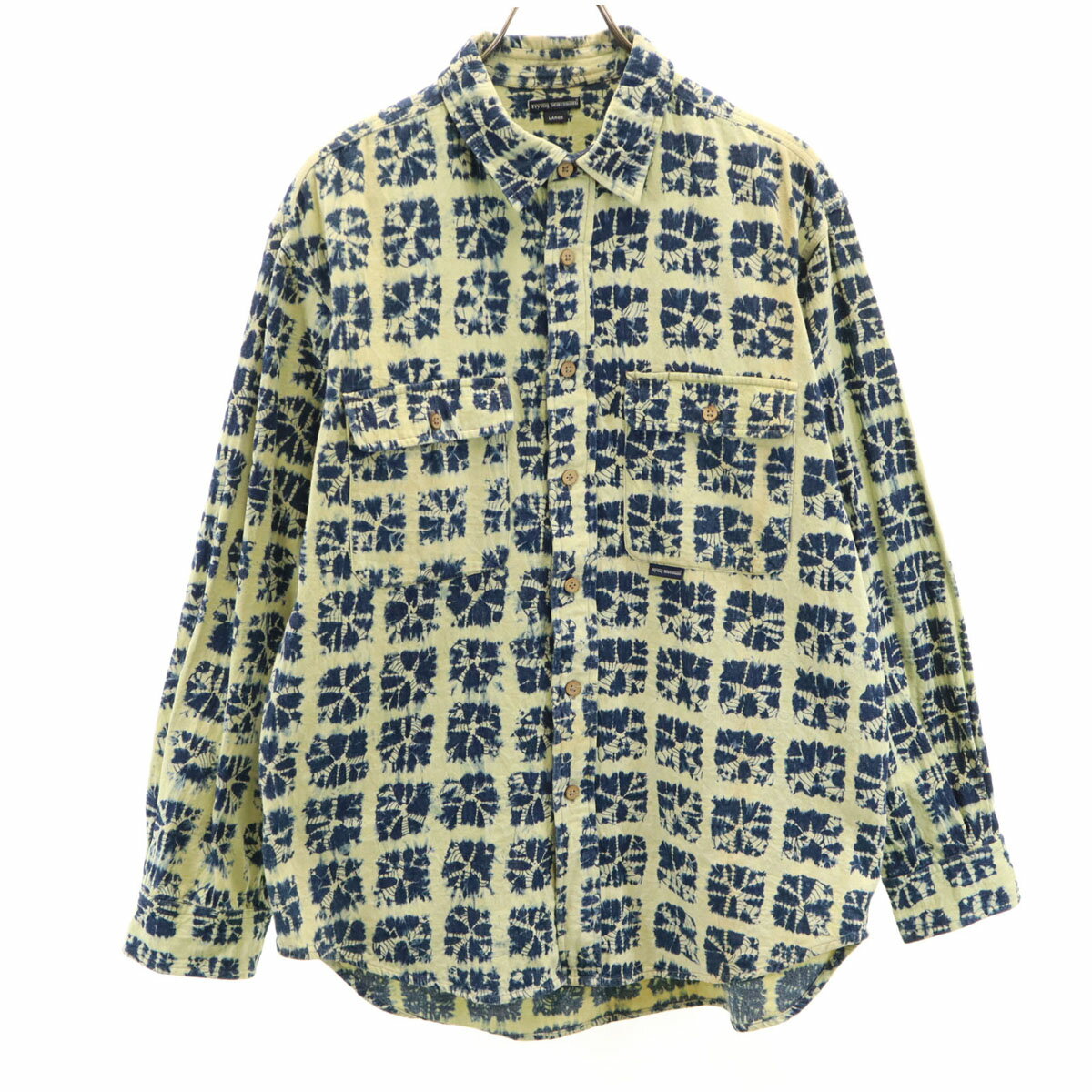 古着 Flying Scotsman フライングスコッツマン 総柄 長袖 シャツ L ネイビー×イエロー系 メンズ 【中古】