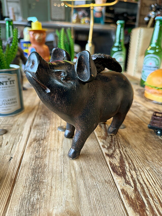 金運&幸運を運んで来る フライングピッグ ポリレジンオブジェ アメリカン雑貨 アメリカ雑貨 アンティーク風 ヴィンテージ風 ビンテージ風 レトロ ノスタルジック グッズ おしゃれ ショップインテリア
