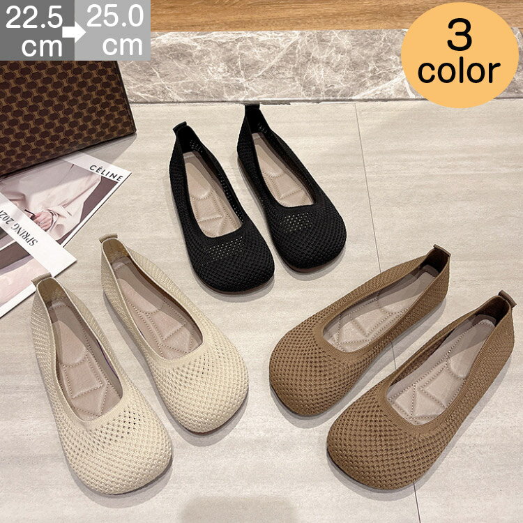 フラッ シューズ レディース 25cm 24.5 24 23.5 23 22.5 カジュアルシューズ フラットシューズ 通気 ニット レディース 痛くない