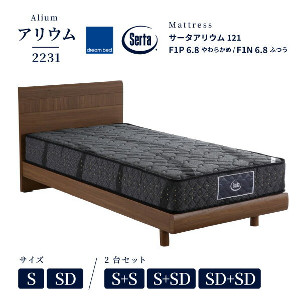 送料・開梱設置無料 ドリームベッド フレーム+マットレスセット ベッド アリウム2231 フラットタイプ シングル セミダブル 2台セットでお得 S/SD/S+S/S+SD/SD+SD サータ アリウム121 F1P6.8 やわらかめ F1N6.8 ふつう ドリームベッド サイズ・機能・寝心地が選べるベッド