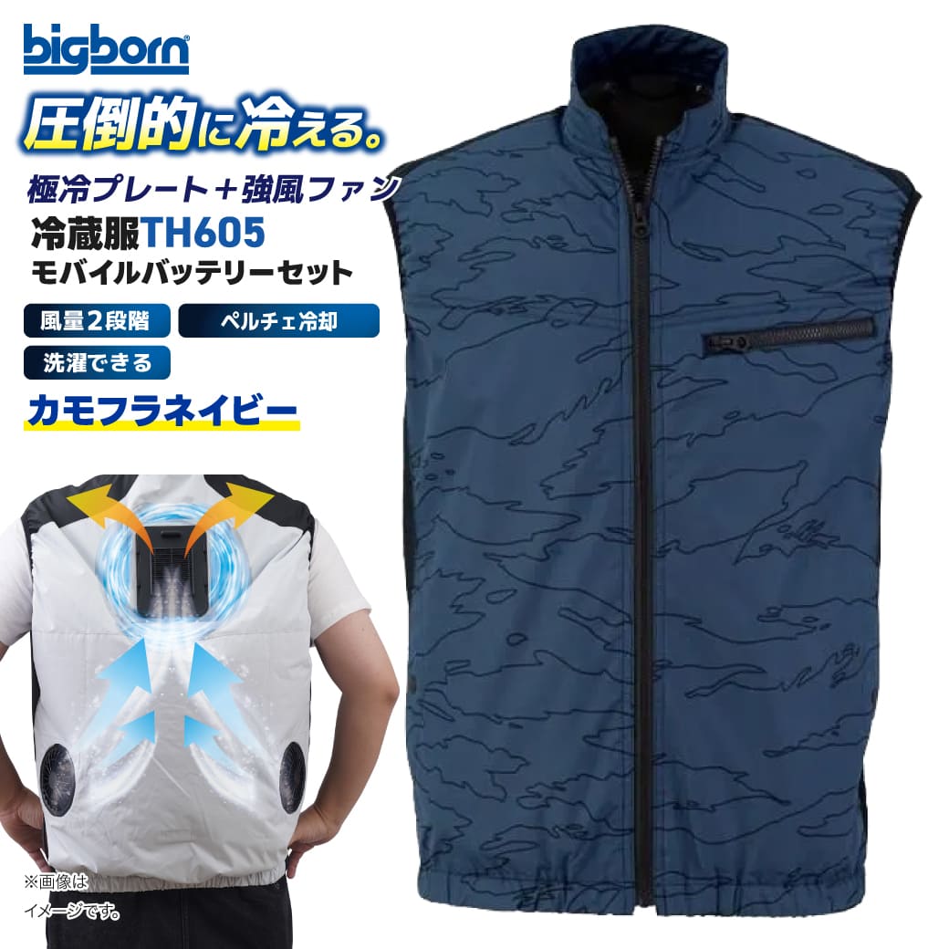 bigborn×サンコー 極冷空調作業服 冷蔵服4 TH605 ファンバッテリーセット カモフラネイビー フリーサイズ 最大-19℃ 強風ファン ペルチェ冷却プレート