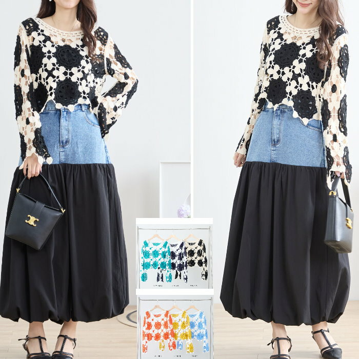 【2025新作】【M〜L】カラフルレースフラワートップス(N12-173) 花 網 フリーサイズ トップス レディースアパレル シャツ ブラウス Tシャツ カットソー 13002205 ミス ミセス10代20代30代40代50代60代フレアー体系カバー春夏秋冬オールシーズン